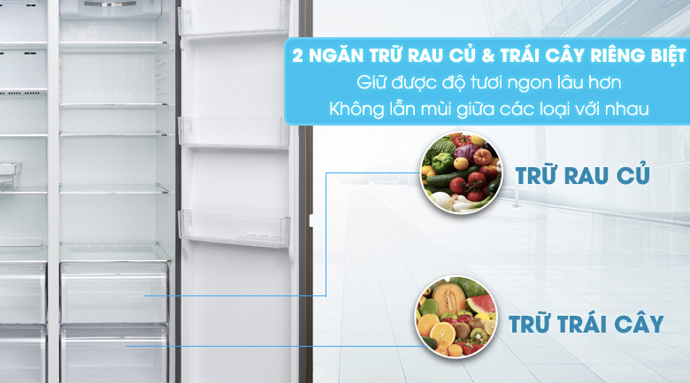 2 ngăn trữ rau củ & trái cây riêng biệt