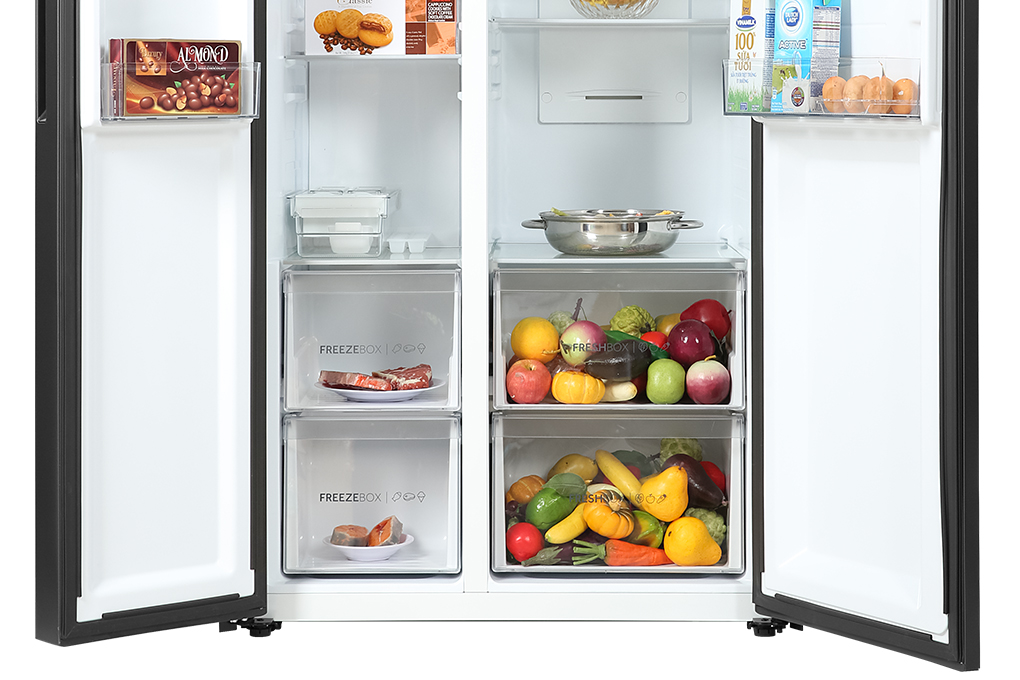 – Kiểu dáng: tủ lạnh Side by side hiện đại, kết hợp cùng sắc đen tinh tế.