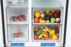 – Thiết kế ngăn lạnh với ngăn trữ rau củ có thể mở rộng góc kéo đến 90 độ, tiện lợi, dễ dàng cho và lấy rau củ vào ngăn.