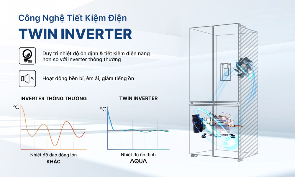 Tủ Lạnh Aqua Inverter 529 Lít AQR-M600XA(GC) tích hợp công nghệ Inverter giúp duy trì nhiệt độ ổn định, đồng thời giảm hao phí năng lượng trong quá trình hoạt động. Công nghệ này còn giảm đáng kể tiếng ồn, mang lại trải nghiệm sử dụng thoải mái, đặc biệt trong không gian yên tĩnh.
