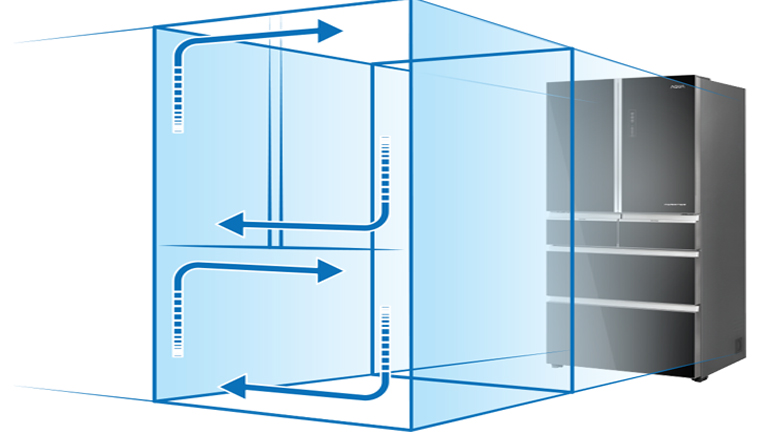 Hệ thống hai dàn lạnh và hai quạt độc lập, giúp quá trình làm lạnh cho ngăn lạnh và ngăn đông hiệu quả hơn, hạn chế quá trình lẫn mùi giữa các ngăn.
