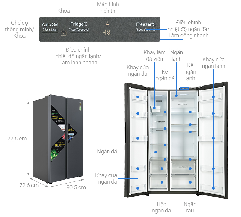 – Aqua Inverter 646 lít AQR-S682XA(SLB) được thiết kế theo kiểu tủ lạnh Side by Side với chất liệu cửa tủ được làm bằng thép không gỉ bền bỉ, cho khả năng chống trầy xước và chống va đập tối ưu.