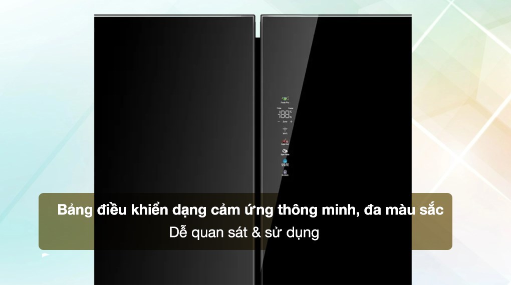 Bảng điều khiển được thiết kế dạng cảm ứng thông minh với đa màu sắc, giúp bạn dễ quan sát và sử dụng. Hơn nữa, vị trí của màn hình điều khiển nằm ở bên ngoài cánh cửa ngăn mát tủ lạnh Aqua tiện lợi.