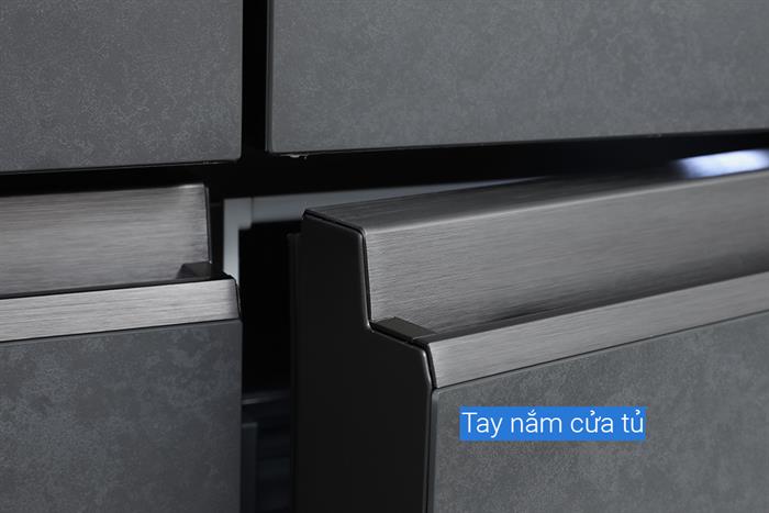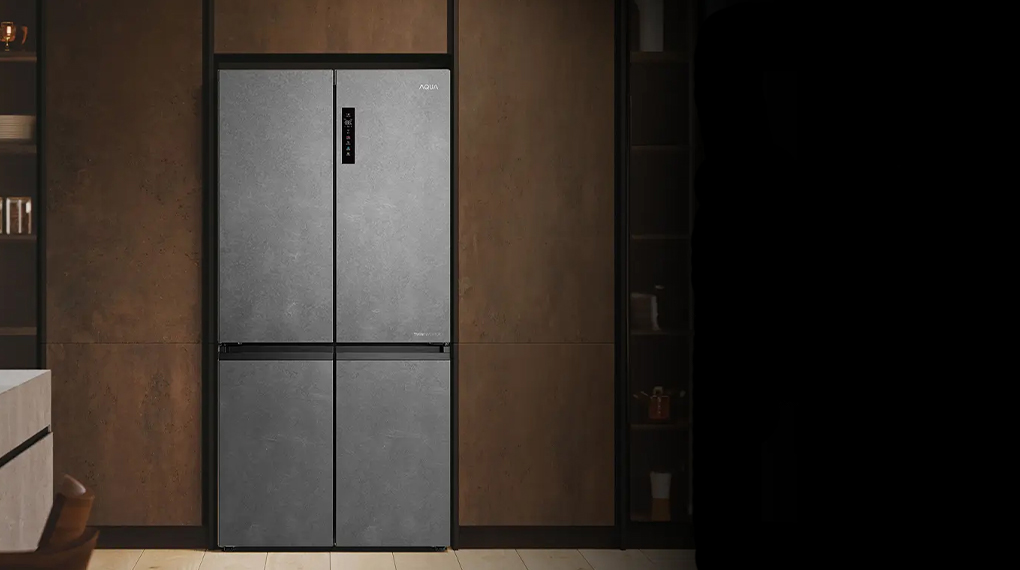 – Aqua AQR-M727XA(GS)U1 với kiểu dáng tủ lạnh MultiDoor, cửa tủ có chất liệu mặt gương thiết kế vân đá, tay nắm cửa bằng hợp kim nhôm cho độ bền cao, thiết kế nằm ngang liền mạch góp phần giúp tủ lạnh thêm thanh lịch, dễ đóng mở.