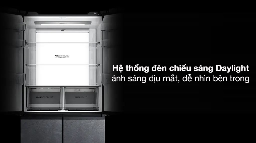 – Hệ thống đèn chiếu sáng Daylight: từ từ tạo ra ánh sáng tự nhiên dịu nhẹ, không gây chói mắt, cho bạn đặt vào, lấy ra hoặc tìm kiếm các thực phẩm trong tủ với khả năng nhìn thoải mái, dễ chịu.