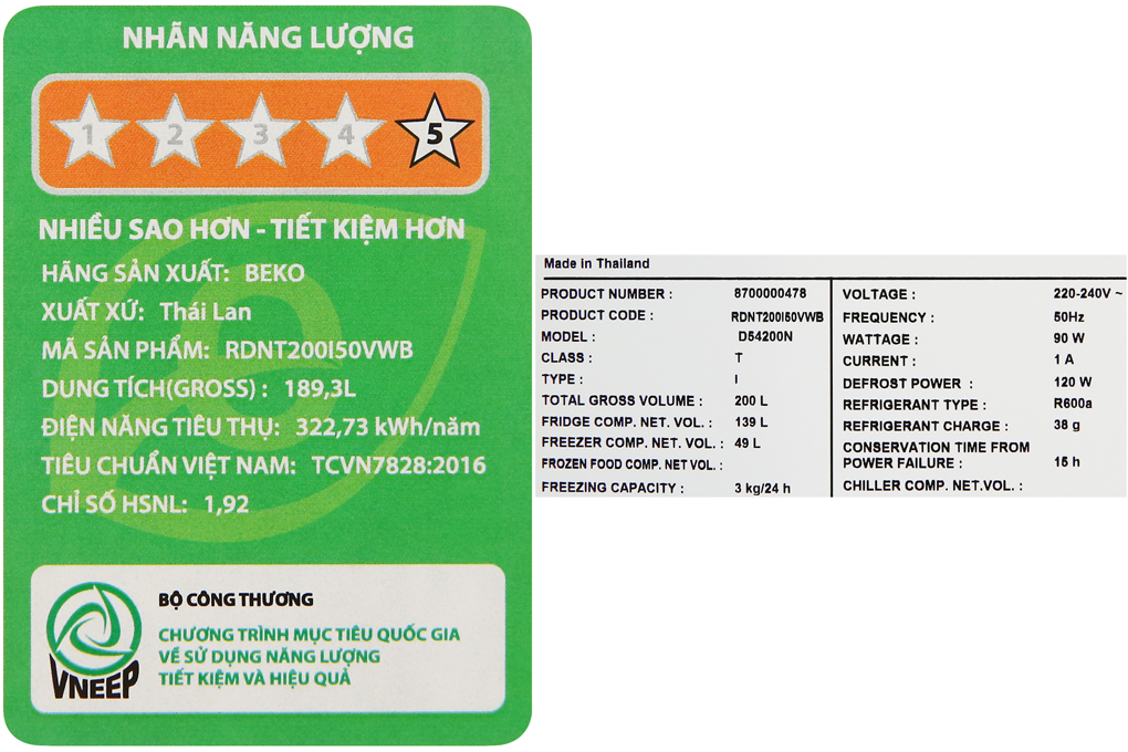 Tủ lạnh Beko với dung tích 188 lít phù hợp cho gia đình 2 – 3 người