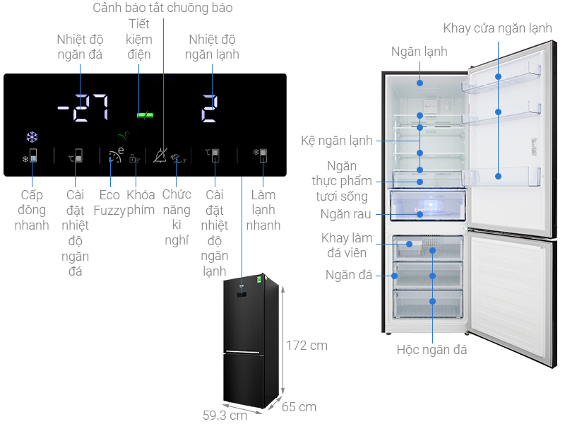 Thiết kế hiện đại với ngăn đá dưới tiện dụng