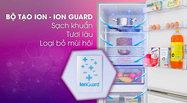 Chiếc tủ lạnh Beko Inverter còn sở hữu công nghệ Ion Guard, có khả năng sản sinh ra các ion âm tự nhiên để loại bỏ vi khuẩn gây mùi hôi bên trong tủ lạnh. Điều này giúp cho không gian bên trong tủ luôn được tươi mát, thoải mái mỗi khi mở cửa tủ.
