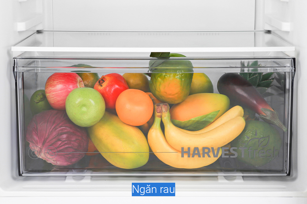 Công nghệ ánh sáng 3 màu HarvestFresh, mô phỏng ánh sáng theo chu kì trong ngày của mặt trời, giúp bảo quản tối ưu rau củ quả trong tủ lạnh, giữ được các Vitamin A và Vitamin C trong thực phẩm.