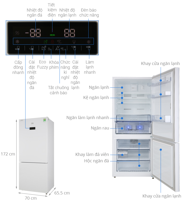 Chiếc tủ lạnh Beko này có dung tích 396 lít phù hợp với gia đình có 3 – 4 thành viên.