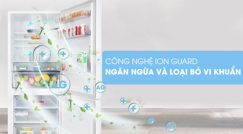 Công nghệ than hoạt tính và Ion Guard tạo ra các ion âm trung hòa với ion dương của thực phẩm giúp ngăn ngừa sự phát triển và loại bỏ hoàn toàn vi khuẩn bên trong tủ lạnh. Bên cạnh đó, còn có tác dụng khử mùi tối ưu, mang đến thực phẩm tươi ngon và an toàn, bảo vệ tốt nhất sức khỏe cho gia đình.