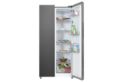 – Kiểu dáng: là mẫu tủ lạnh Side by Side với 2 cánh làm từ thép không gỉ màu đen – xám sang trọng, chất liệu không bám dấu vân tay, dễ dàng vệ sinh.