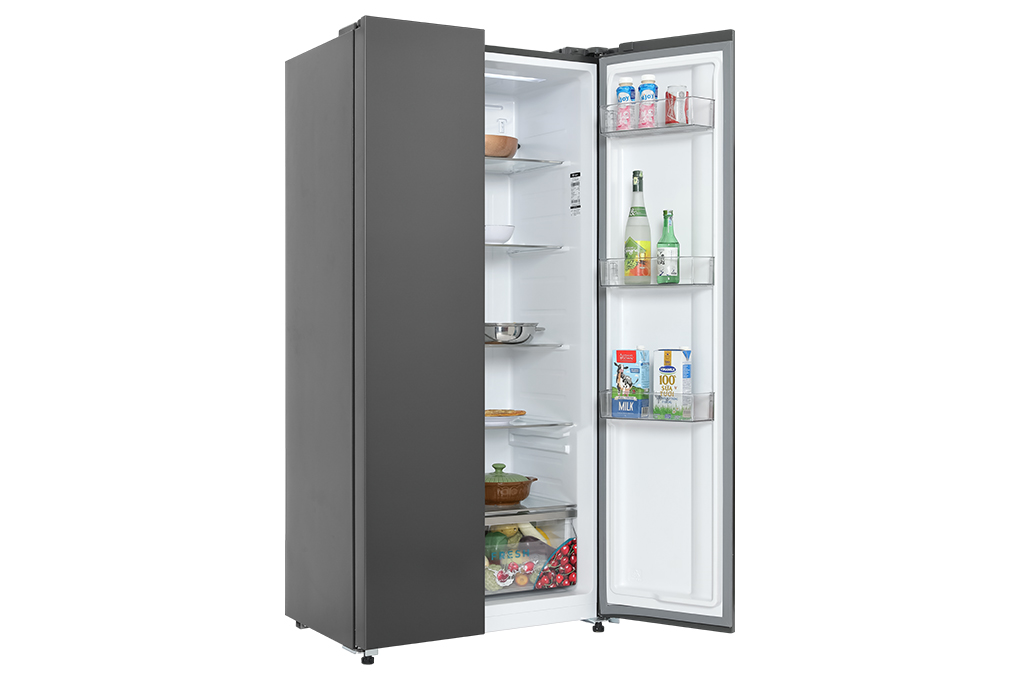 – Mẫu tủ lạnh này có ngăn đá nằm ở mặt bên trái của tủ, chứa nhiều khay, ngăn và hộc đựng để người dùng phân chia thực phẩm gọn gàng theo thói quen của mình.