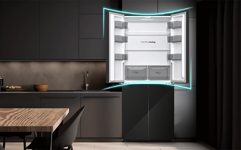 Tủ lạnh Casper Inverter Multi Door 430 lít RM-D430GBS được trang bị hệ thống làm lạnh đa chiều Multi Air Flow, với các lỗ thoát khí được phân bố đều khắp khoang tủ. Công nghệ này luân chuyển khí lạnh đồng đều đến từng ngăn và hộc đựng để thực phẩm được làm lạnh hiệu quả, giữ được độ tươi ngon lâu dài mà không bị mất nước.