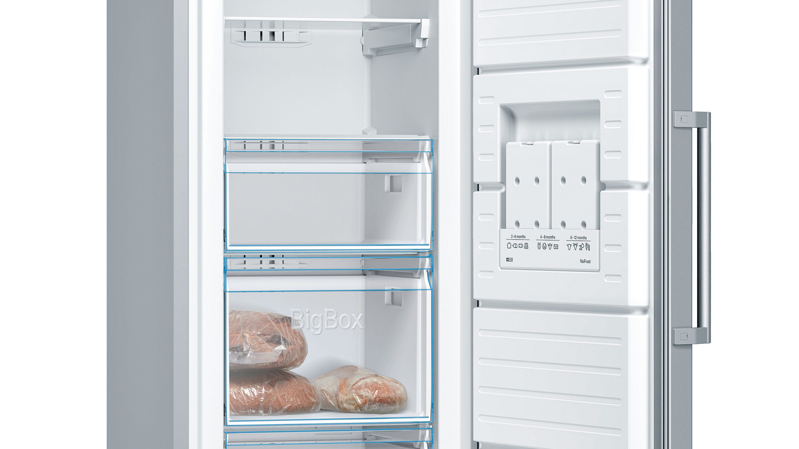 Công nghệ NoFrost của tủ đông GSN36VI3P Bosch sẽ hút độ ẩm không khí vào một thiết bị đặc biệt thay vì tích tụ bên trong thực phẩm. Hệ thống làm lạnh này sẽ tự động hút hơi ẩm ra và thỉnh thoảng còn tự động rã đông.