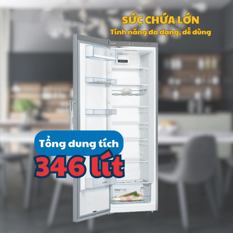 Tổng dung tích đến 346 lít cho bạn thoải mái bảo quản và làm lạnh thực phẩm