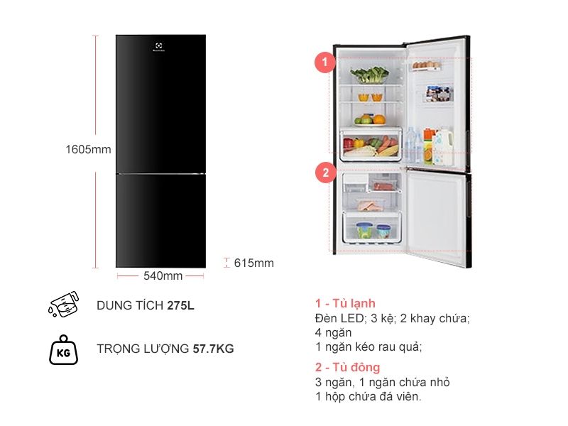 Tủ Lạnh Electrolux 275 Lít EBB2802H-H