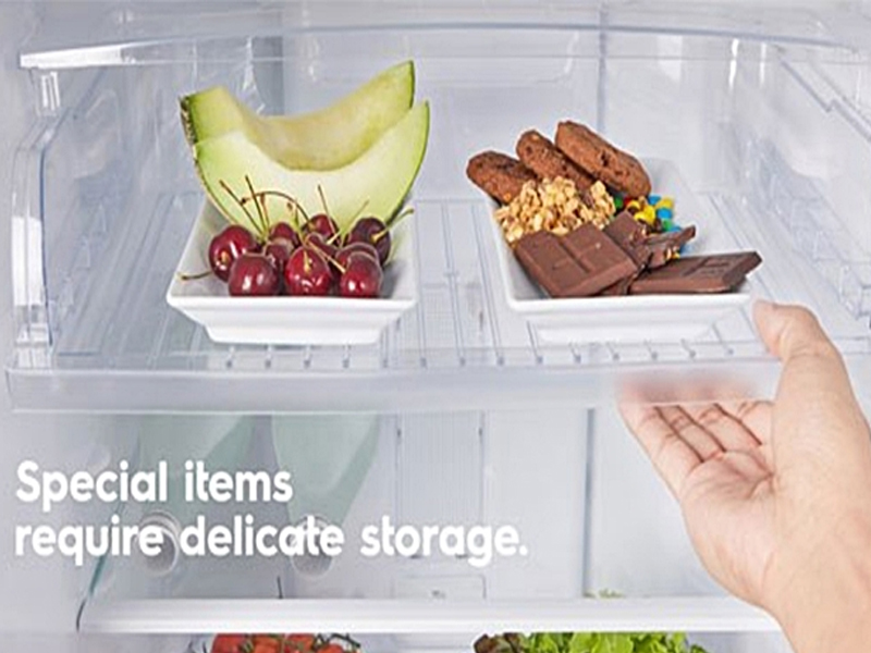 Tủ lạnh trang bị hệ thống ngăn kệ FlexStor linh hoạt di chuyển để phù hợp với mọi nhu cầu lưu trữ của bạn, từ những hộp sữa thông thường đến những chai lọ nhỏ hay có hình dạng, kích thước đặc biệt.
