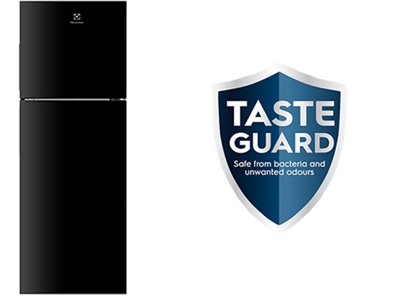 Tủ lạnh Electrolux ETB2802H-H màu đen có công nghệ TasteGuard giúp loại bỏ 99.8% vi khuẩn và những mùi khó chịu để máy lạnh luôn tươi mát và vệ sinh.