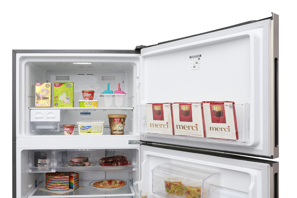 Chiếc tủ lạnh Inverter này cho phép người dùng có thể tùy biến không gian trong tủ dễ dàng như việc bỏ bớt ngăn kệ để có thêm không gian cho các loại thực phẩm cỡ lớn. Ngoài ra, bạn có thể thay đổi vị trí các ngăn kệ một cách linh hoạt, để lưu trữ thực phẩm theo nhiều cách.