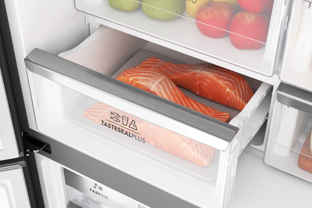 – Ngăn đông mềm cao cấp TasteSeal Plus (-2°C đến 3°C): Cho phép bạn tùy chỉnh nhiệt độ từ -2°C đến 3°C dễ dàng theo nhóm thực phẩm cần được bảo quản như hải sản – thịt tươi sống, thực phẩm mềm (phô mai, sữa chua,…) và các loại đồ uống.