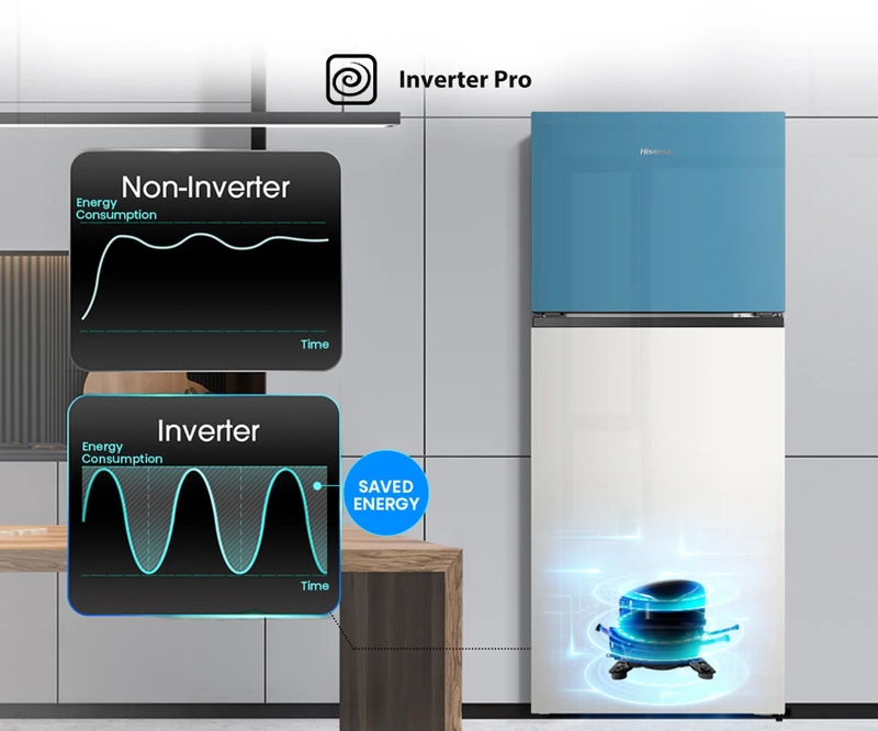 Tủ lạnh Hisense Inverter 424 lít RT549N4EBU sử dụng công nghệ Inverter Pro giúp tiết kiệm điện năng và tối ưu hiệu suất làm lạnh. Hệ thống này giám sát liên tục các điều kiện bên trong thiết bị để luôn duy trì một mức nhiệt ổn định cho các loại thực phẩm. Không chỉ hạn chế tiêu hao điện năng, Inverter Pro còn giúp kéo dài tuổi thọ của tủ lạnh, giúp cho thiết bị trở thành sự lựa chọn bền bỉ, đáng tin cậy cho mọi gia đình.