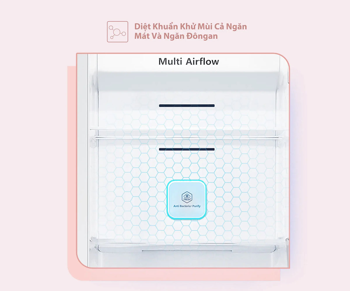 Công nghệ làm lạnh đa chiều giúp phân phối không khí lạnh đồng đều khắp các ngăn kệ, duy trì nhiệt độ tối ưu liên tục trong suốt khoang lạnh. Cơ chế này đảm bảo thực phẩm được ướp lạnh hoàn hảo, bất kể chúng được đặt ở vị trí nào.