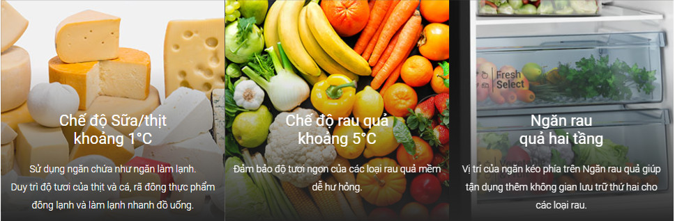 Lưu trữ linh hoạt và tối ưu: Có thể chọn vị trí và chế độ ngăn trữ tùy theo nhu cầu bảo quản. Luôn đảm bảo sự linh hoạt để có thể đặt ngăn kéo ở trên cùng hoặc dưới cùng của tủ lạnh. Có thể tùy chỉnh nhiệt độ bên trong ngăn bằng cách chuyển đổi giữa chế độ rau và sữa/thịt khi được đặt ở vị trí bảo quản ban đầu.