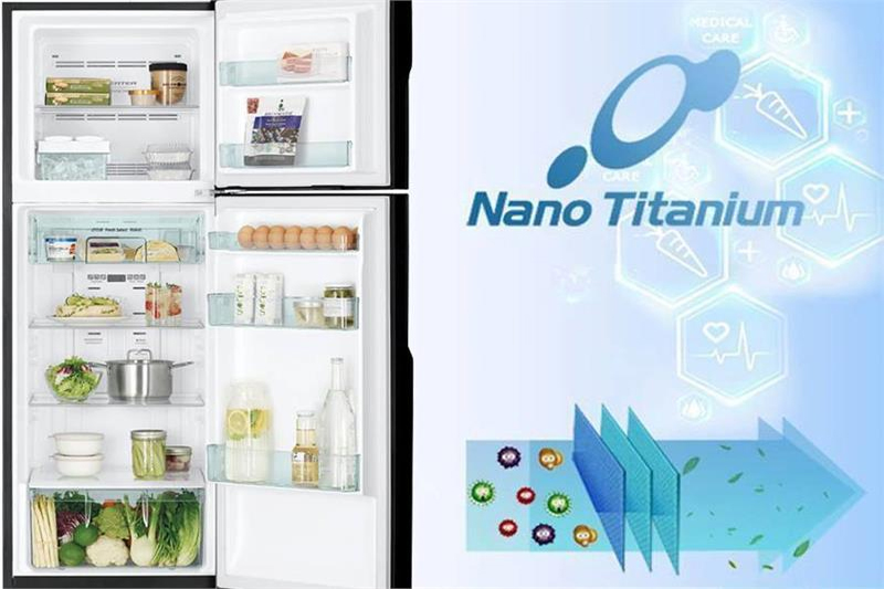 Hitachi R-H310PGV7 tích hợp màng mọc Nano Titanium với chất xúc tác TiO2 có tác dụng vô hiệu hoá vi khuẩn và khử mùi hiệu quả, đem đến không khí trong lành bên trong khoang tủ. Với công nghệ kháng khuẩn và khử mùi này, bạn có thể an tâm bảo quản thực phẩm, đồ uống cho gia đình. Ngoài ra, màng lọc Nano Titanium là bộ phận được sử dụng vĩnh viễn, không cần thay thế, không cần bảo trì và không tiêu tốn điện năng khi sử dụng.