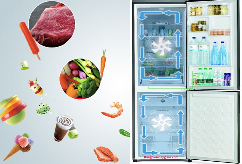 Hệ thống này trang bị 2 quạt làm lạnh riêng ở hai ngăn tủ mang luồng khí mát đến nhiều vị trí khác nhau, giúp toàn bộ tủ đều được làm lạnh đồng đều và duy trì ổn định nhiệt độ. Với tính năng này, các thực phẩm sẽ được bảo quản một cách tốt hơn.