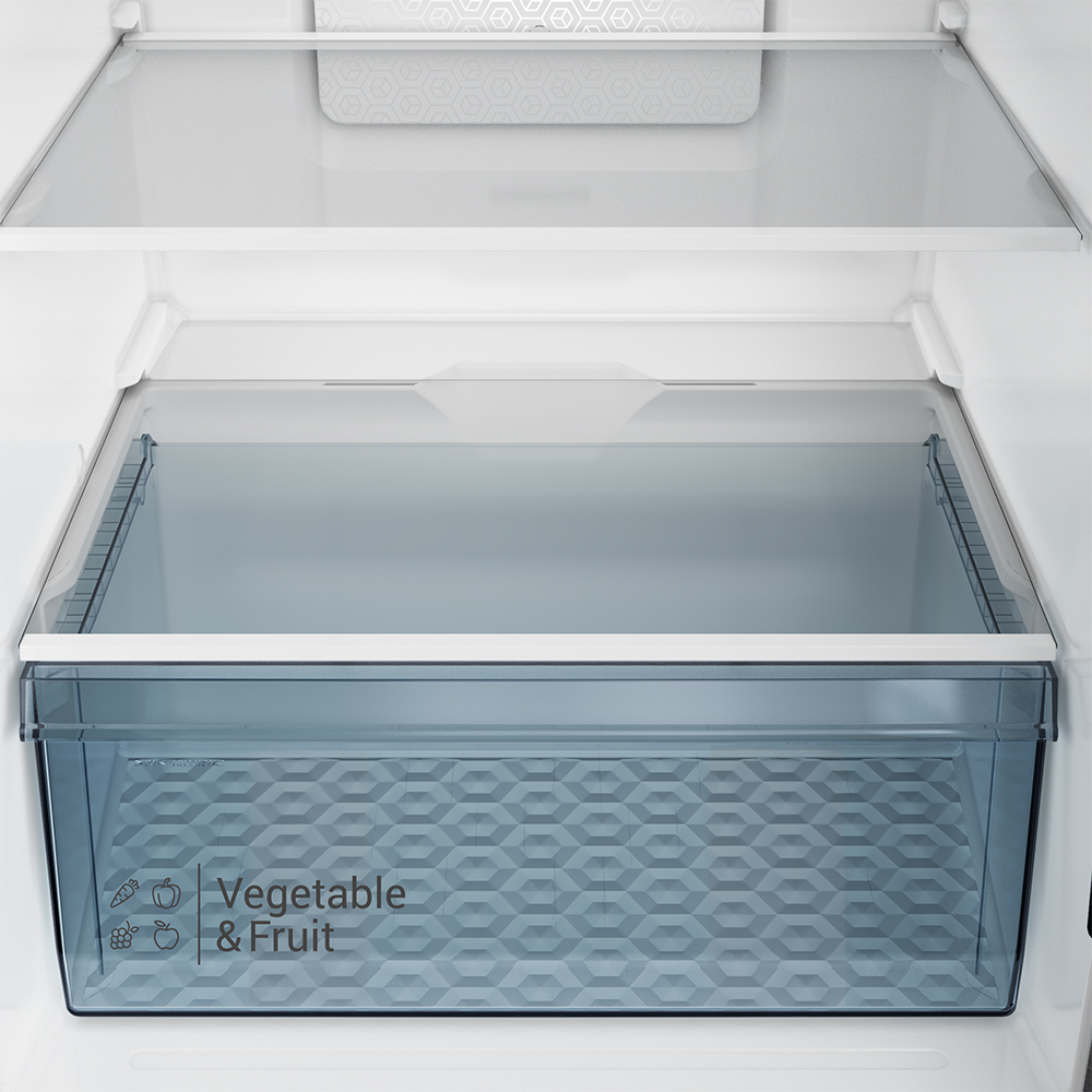 Ngoài ra, tủ lạnh còn được trang bị ngăn rau quả giữ ẩm rộng rãi, giúp kiểm soát và duy trì độ ẩm lý tưởng, đảm bảo rau củ luôn tươi ngon, hạn chế tình trạng úng hoặc héo trong thời gian dài.