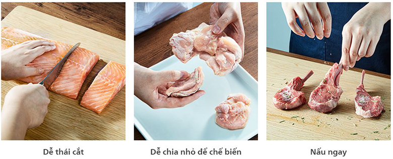 Chế độ Soft Freeze để giữ thịt cá ở trạng thái đông mềm -3°C tươi ngon, dễ dàng cắt thái, chia nhỏ và có thể chế biến ngay không cần rã đông. Đồng thời bảo toàn trọn vẹn hương vị và dưỡng chất.