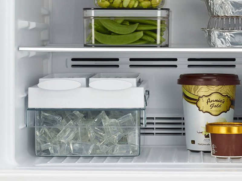 Tủ lạnh Hitachi R-F510PGV8 (BSL) Inverter có khay đá xoay linh hoạt ở bất kỳ vị trí nào trong ngăn đá. Khi cần lấy đá, bạn chỉ cần xoay nút vặn trên khay đá thì đá sẽ tự động rơi xuống, tiết kiệm thời gian khi bỏ qua được công đoạn lấy đá ra khỏi khay hoàn toàn bằng tay như các khay đá thông thường.