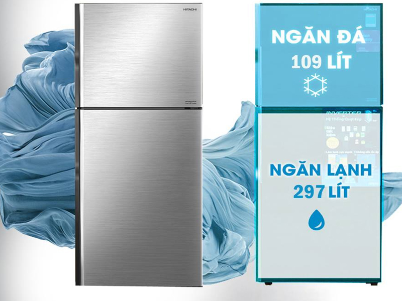 Tủ lạnh Hitachi ngăn đá trên Inverter R-F510PGV8 (BSL) có tổng dung tích 406 lít trong đó dung tích ngăn đông 109 lít, ngăn lạnh 297 lít thích hợp với gia đình từ trên 4 – 9 thành viên.