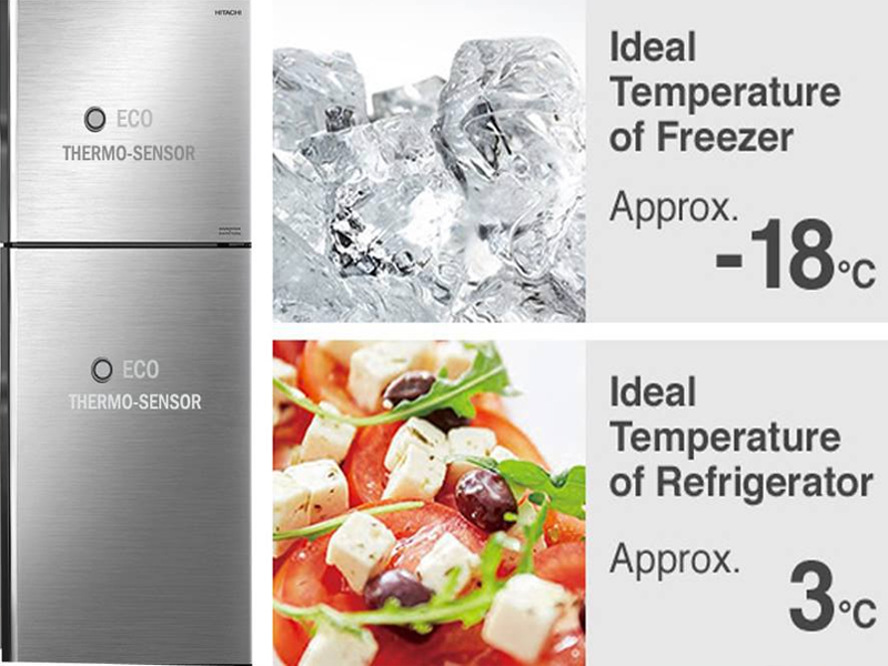 Tủ lạnh Hitachi 406 lít R-F510PGV8 (BSL) bao gồm hai cảm biến nhiệt kép ECO, một cho ngăn đá và một cho ngăn lạnh. Hai cảm biến nhiệt này nhận biết sự thay đổi nhiệt độ bên trong và bên ngoài ở từng ngăn, cho phép duy trì nhiệt độ lý tưởng tại mọi thời điểm.