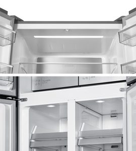 • Thiết kế tấm ốp kim loại được sử dụng cho mặt sau bên trong tủ lạnh mang đến cảm giác sang trọng.