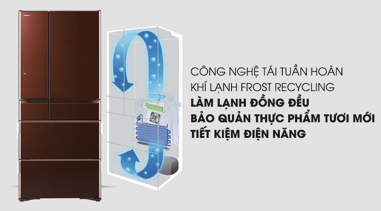 Công nghệ Frost Recycling sẽ tạo ra luồng khí lạnh lan tỏa đến các ngăn chứa nhờ tái sự dụng hơi lạnh từ băng tuyết. Nhờ vậy, thực phẩm bên trong tủ lạnh sẽ được làm lạnh đồng đều, hiệu quả.