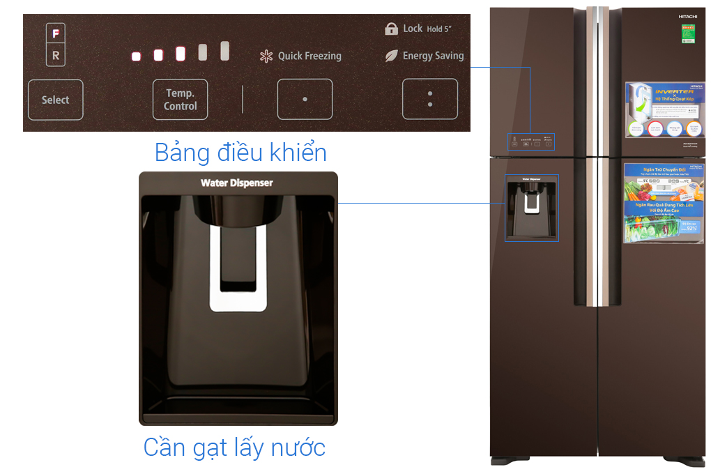 Nhờ trang bị tính năng lấy nước bên ngoài độc đáo và tiện lợi của tủ lạnh Hitachi, bạn không chỉ nhanh chóng được tận hưởng ly nước mát lạnh mà không phải mở cửa tủ nhiều lần mà nó còn giúp giảm thất thoát hơi lạnh bên trong tủ.