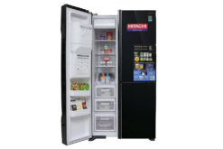 Tủ lạnh Hitachi R-M700GPGV2 sở hữu kiểu dáng sang trọng với tông màu đen quý phái cùng mặt gương sáng bóng phía trước, chiếc tủ lạnh side by side này chắc chắn sẽ là điểm nhấn, tô điểm thêm cho không gian nội thất của gia đình bạn. Ngoài ra, tủ còn có bảng điều khiển cảm ứng bên ngoài giúp bạn dễ điều chỉnh tủ hơn.
