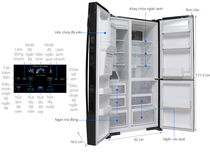 • Tiện lợi hơn cho người dùng với làm đá tự động và bảng điều khiển bên ngoài.