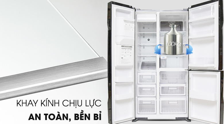 Tủ có các khay chứa được làm từ thủy tinh chịu lực lớn, bạn sẽ không cần lo lắng khi cho nhiều thức ăn lên khay sẽ gây ảnh hưởng đến tủ lạnh nữa.