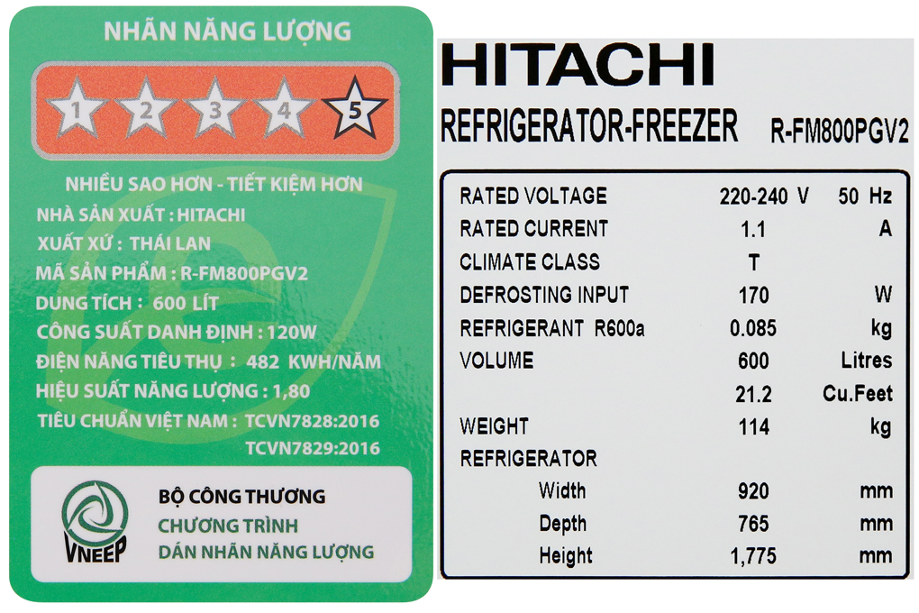 Tủ lạnh Hitachi Inverter 600 lít R-FM800PGV2 GS