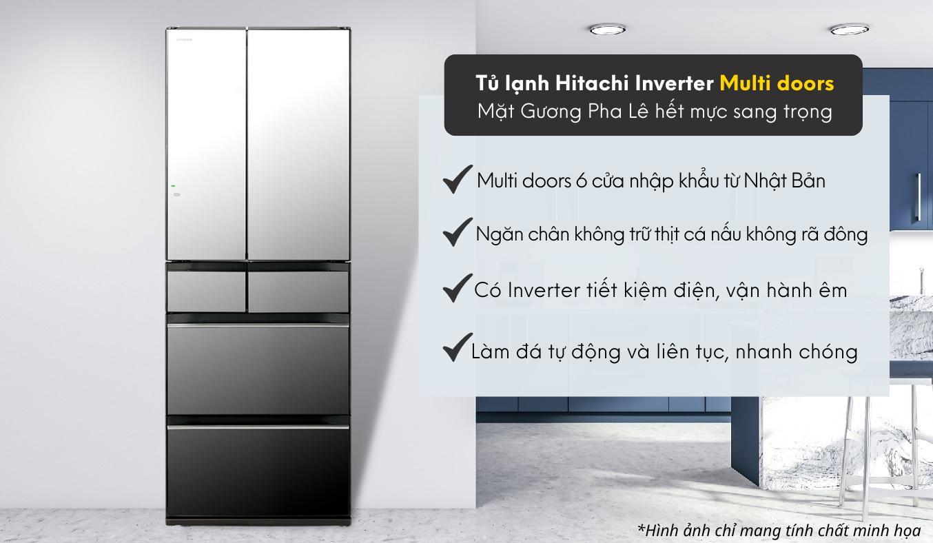 – Tủ lạnh Hitachi R-HW620RV X thuộc mẫu tủ lạnh Multi Door – 6 cánh hiện đại. Mẫu thiết kế sang trọng, tạo điểm nhấn cho không gian nhà bạn.