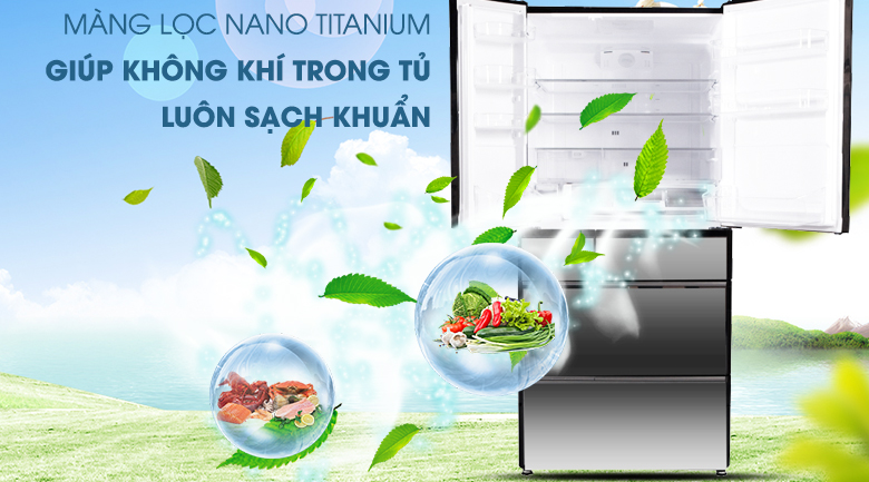 Yếu tố an toàn luôn được đặt lên hàng đầu, nên chiếc tủ lạnh Inverter này đã được trang bị màng lọc kháng khuẩn Nano Titanium vô cùng hiện đại, giúp bạn loại bỏ toàn bộ mùi hôi khó chịu, nấm mốc ra khỏi tủ lạnh, giúp bảo quản cho thực phẩm được tròn vị, tươi ngon lâu hơn.