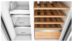 Kệ gỗ với hệ thống ray trượt giúp giảm rung và giữ lại hương vị của rượu. Thiết kế linh hoạt cho phép bạn điều chỉnh chiều cao của các kệ để tạo không gian cho các chai rượu có kích thước khác nhau.