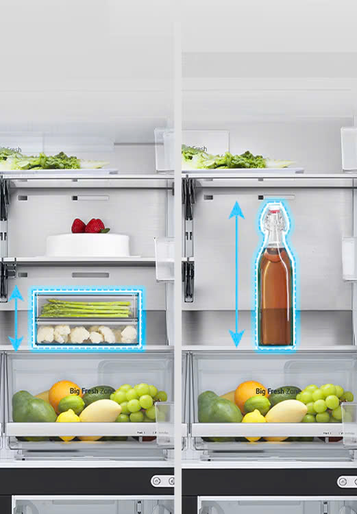 ***Dựa trên kết quả thử nghiệm UL bằng cách sử dụng phương pháp thử nghiệm nội bộ của LG để đo sự biến đổi nhiệt độ trung bình từ đỉnh đến đỉnh trong ngăn thực phẩm tươi ở mức cài đặt nhiệt độ gốc trong điều kiện không tải. Chỉ các mẫu mã áp dụng. Kết quả có thể thay đổi trong sử dụng thực tế.