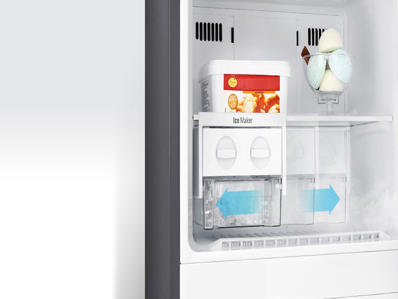 Bạn có thể dễ dàng lấy ra và di chuyển khay đá khi bạn cần thêm không gian làm lạnh.