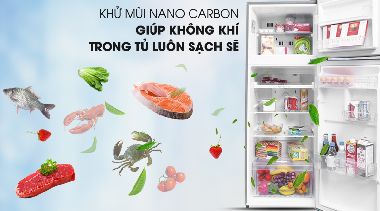 Công nghệ khử mùi Nano Cacbon có trên chiếc tủ lạnh Inverter này giúp kháng khuẩn và khử mùi cực mạnh nhờ các hạt Nano giúp loại bỏ hoàn toàn vi khuẩn, mùi hôi ra khỏi tủ lạnh giúp bảo quản thực phẩm tốt hơn, bảo vệ sức khỏe cho gia đình bạn.