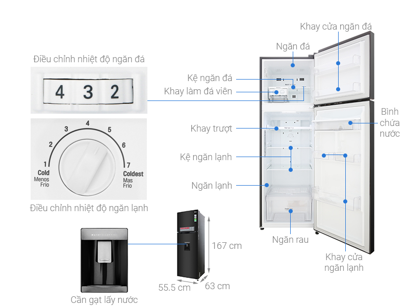 Bên cạnh đó, tủ còn được thiết kế cần gạt lấy nước bên ngoài, không chỉ giúp bạn dễ dàng trong việc sử dụng nước lạnh mà không phải mở tủ , nó còn nâng cao sự đẳng cấp cho gian bếp thêm nhiều lần.