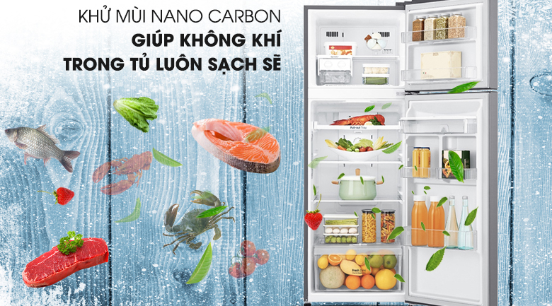 Với khử mùi Nano Carbon, vi khuẩn và mùi hôi sẽ được loại bỏ hiệu quả, trả lại không gian trong lành, sạch sẽ, bạn sẽ không còn bị ám ảnh bởi mùi hôi khó chịu do thực phẩm hay vi khuẩn gây ra trong tủ lạnh nữa.